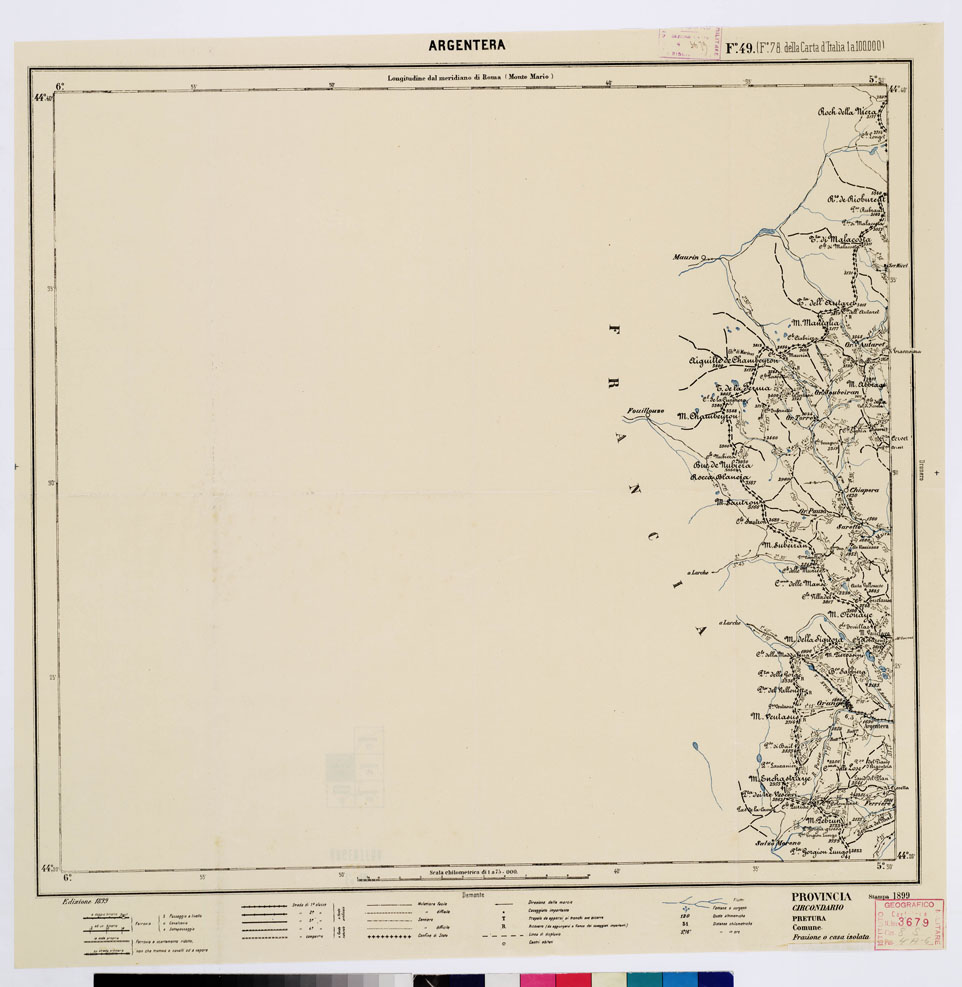 "... FOGLIO 78 DELLA CARTA D'ITALIA 1:75.000. Autore ed editore I.G.M. diFirenze. Rappresentazione orografica planimetrica."
