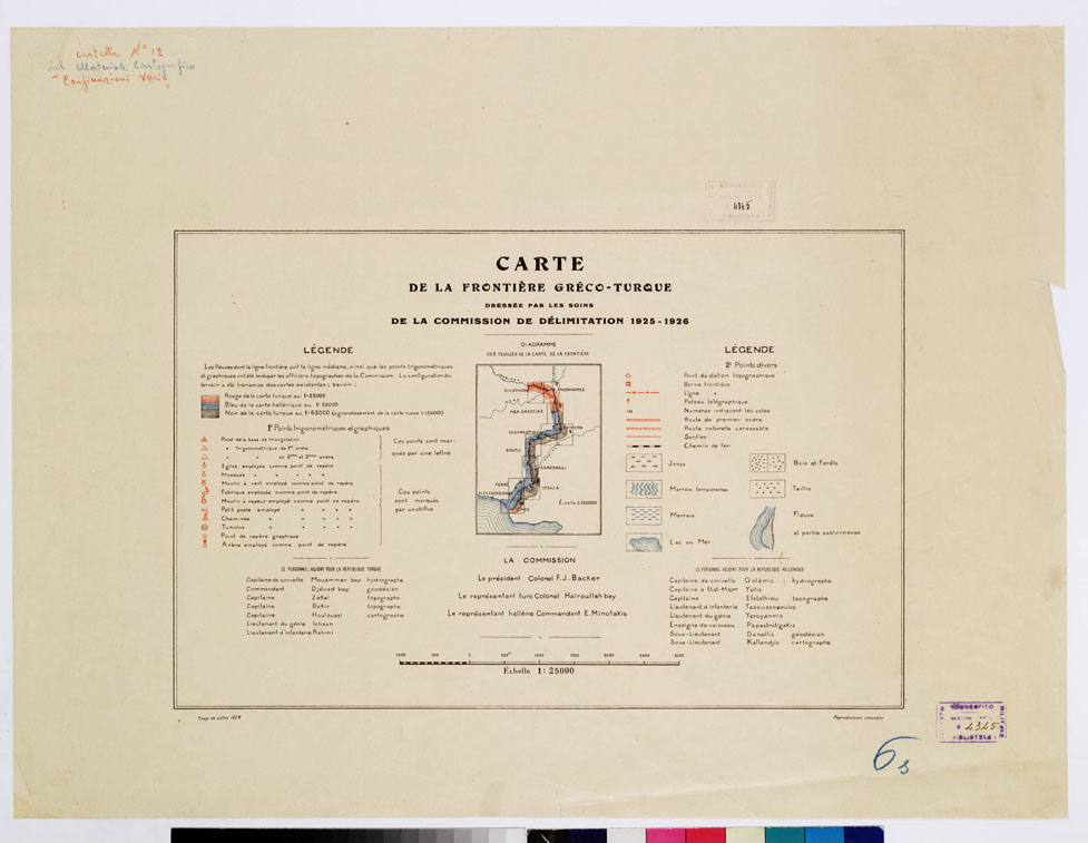 CARTE DE LA FRONTIERE GRECO-TURQUE DRESSE PAR LES SOIN DE LA COMMISSION DE DELIMITATION - QUADRO D'UNIONE