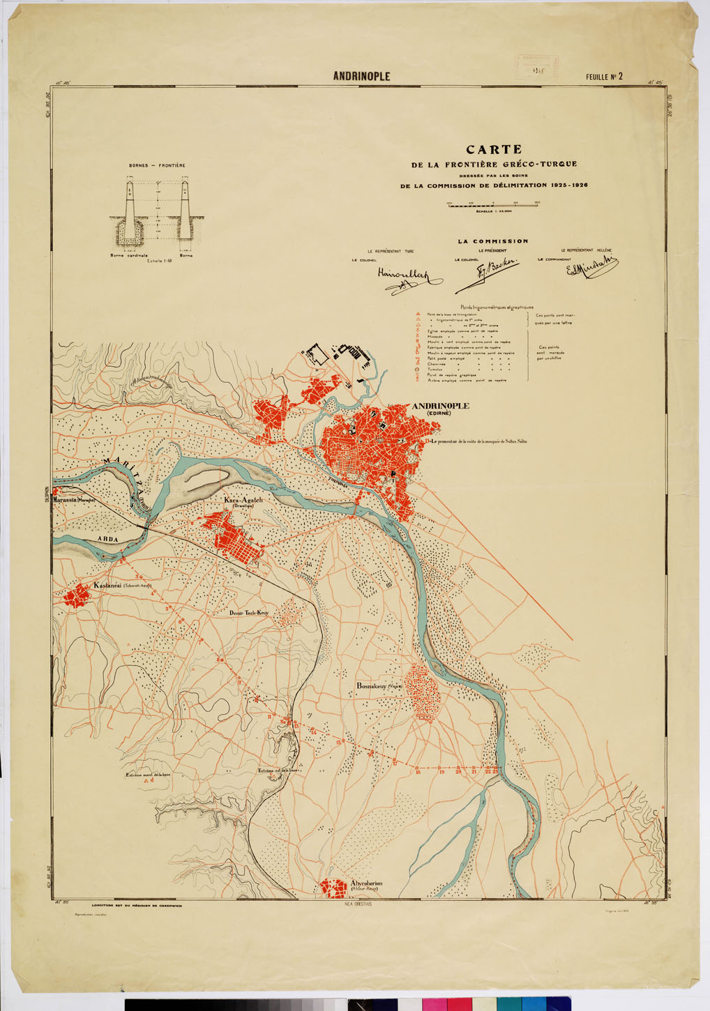 CARTE DE LA FRONTIERE GRECO-TURQUE DRESSE PAR LES SOIN DE LA COMMISSION DE DELIMITATION - FEUILLE N. 2 ANDRINOPLE