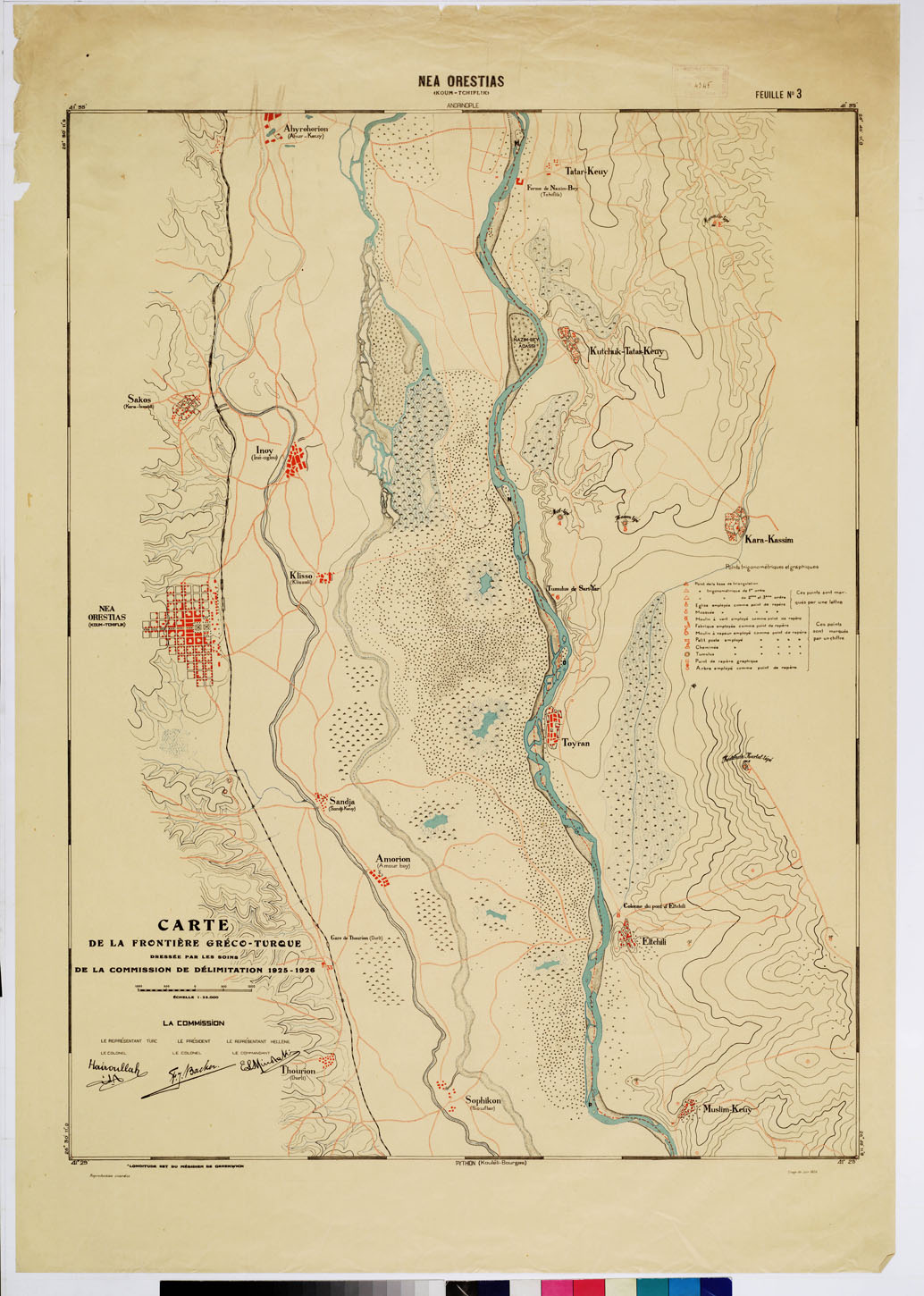 CARTE DE LA FRONTIERE GRECO-TURQUE DRESSE PAR LES SOIN DE LA COMMISSION DE DELIMITATION - FEUILLE N. 3 NEA-ORESTIAS