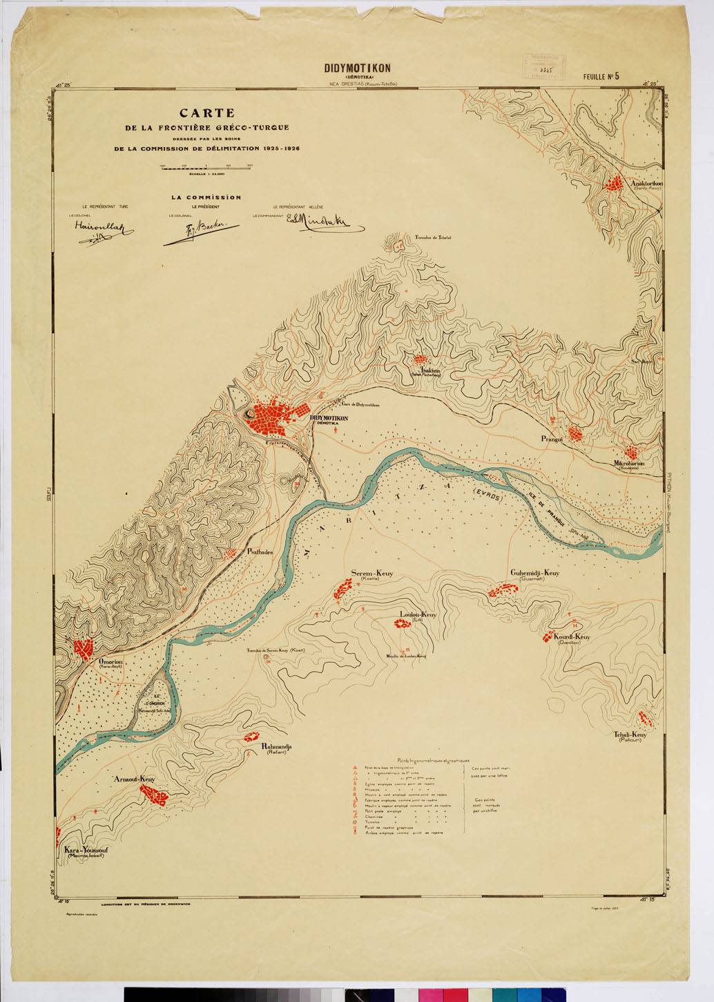 CARTE DE LA FRONTIERE GRECO-TURQUE DRESSE PAR LES SOIN DE LA COMMISSION DE DELIMITATION - FEUILLE N. 5 DIDYMONTIKON