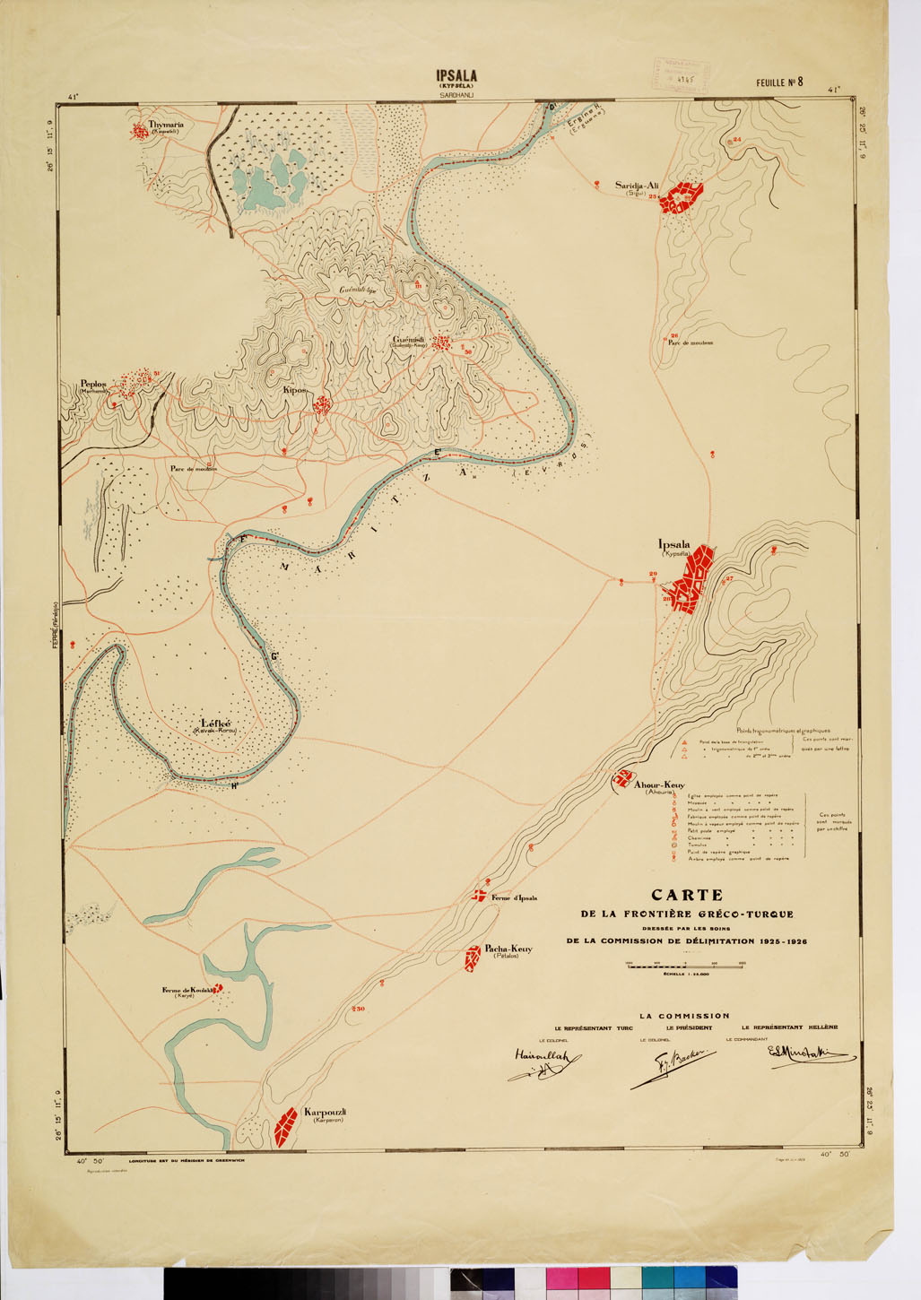 CARTE DE LA FRONTIERE GRECO-TURQUE DRESSE PAR LES SOIN DE LA COMMISSION DE DELIMITATION - FEUILLE N. 8 IPASALA