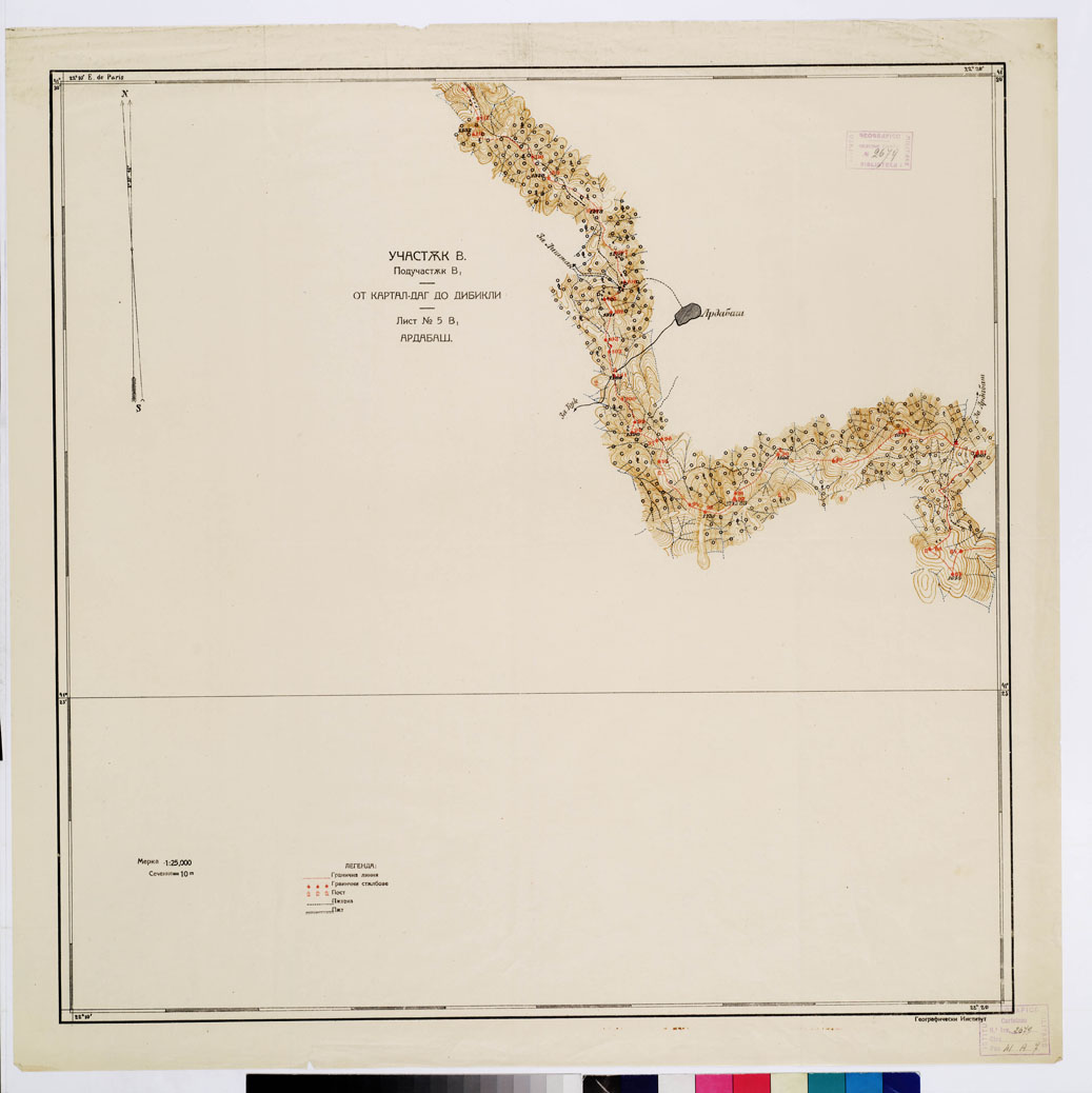 "Autore Commissione Confini. Rappresentazione orografica a curve di livello. Editore Imprimerie D' Etat - Luogo di edizione Sofia. Grafia francese locale. Tipologia policroma."