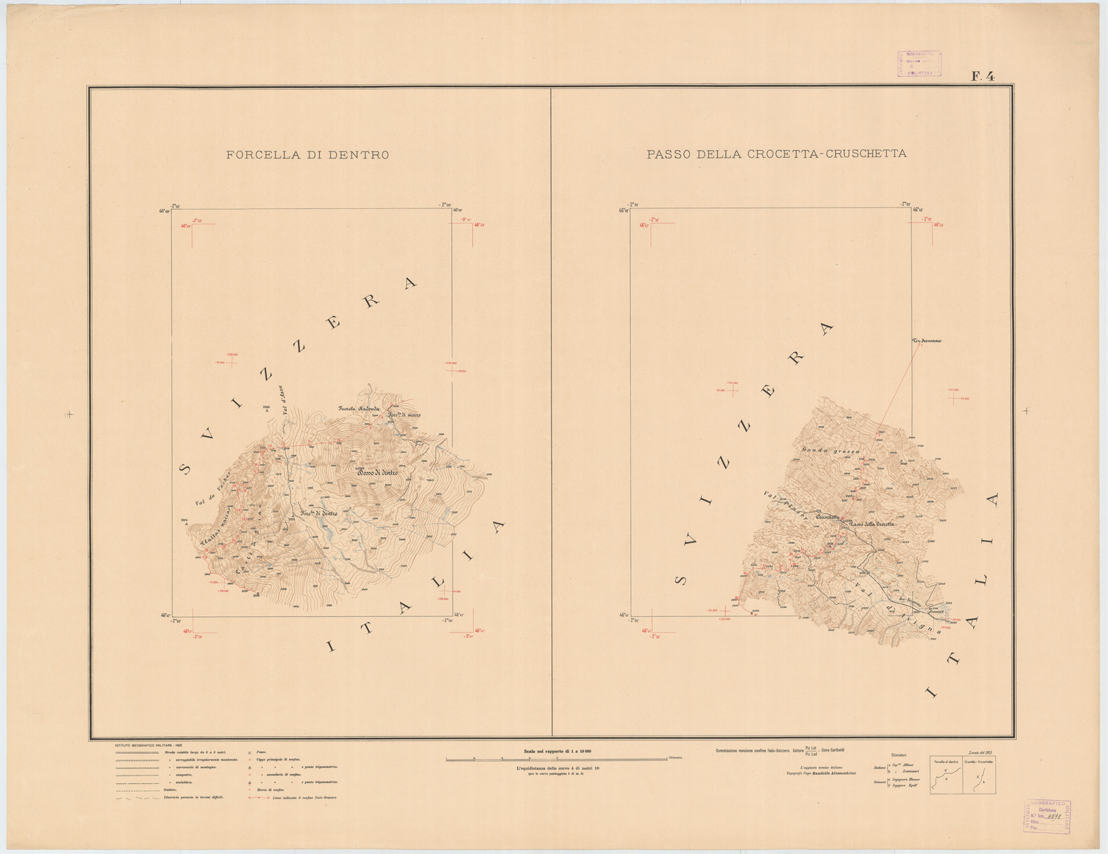 CARTA DELLA LINEA DI CONFINE E ZONE LIMITROFE SETTORE PIZ-LAT CIMA GARIBALDI - CONFINE ITALO SVIZZERO - Foglio 4 FORCELLA DI DENTRO - PASSO DELLA CROCETTA-CRUSCHETTA