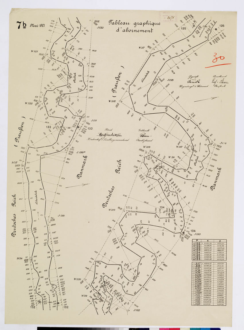 CARTE DE LA FRONTIERE ENTRE L'ALLEMAGNE (PRUSSE) ET LE DANEMARK - E TABLIE PAR LA COMMISSION DE DELIMITATION - TABLEAU GRAPHIQUE D'ABORNEMENT - Foglio 30