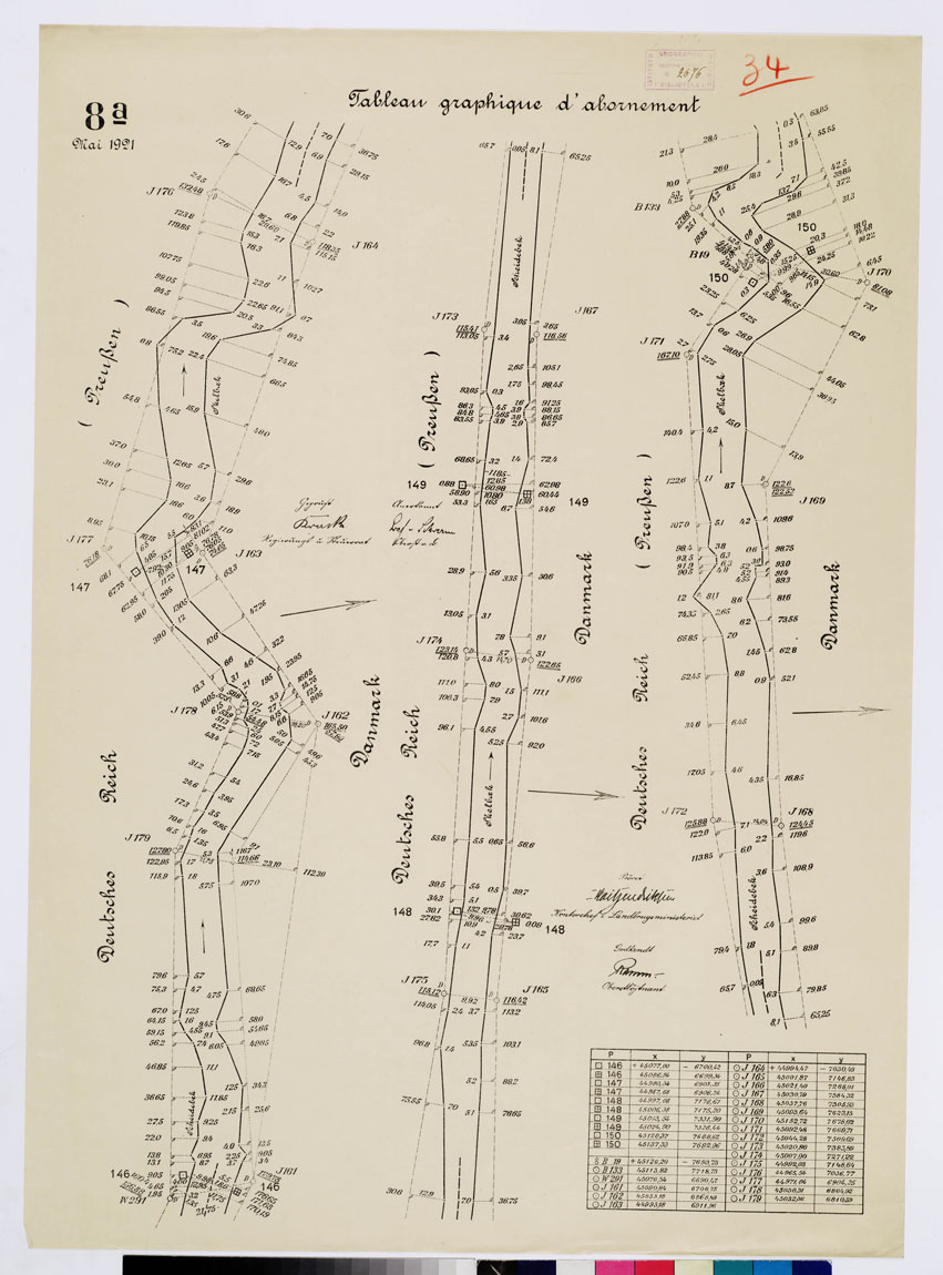 CARTE DE LA FRONTIERE ENTRE L'ALLEMAGNE (PRUSSE) ET LE DANEMARK - E TABLIE PAR LA COMMISSION DE DELIMITATION - TABLEAU GRAPHIQUE D'ABORNEMENT - Foglio 34