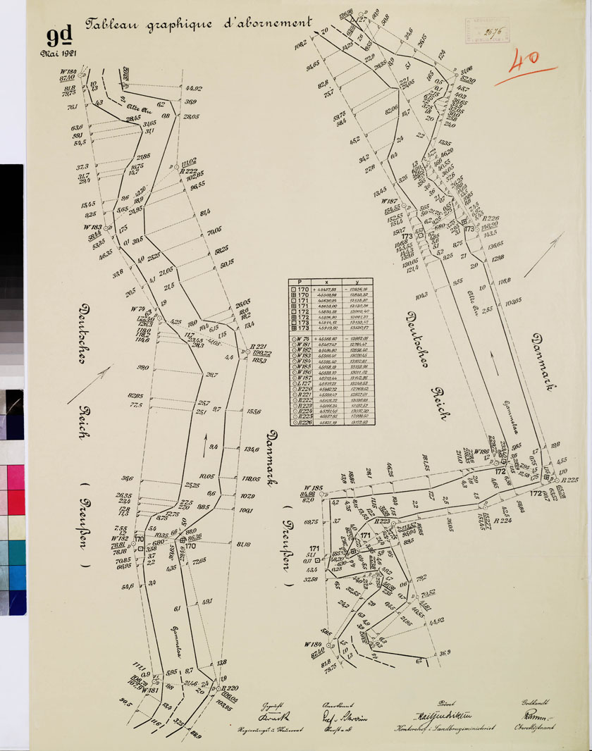 CARTE DE LA FRONTIERE ENTRE L'ALLEMAGNE (PRUSSE) ET LE DANEMARK - E TABLIE PAR LA COMMISSION DE DELIMITATION - TABLEAU GRAPHIQUE D'ABORNEMENT - Foglio 40