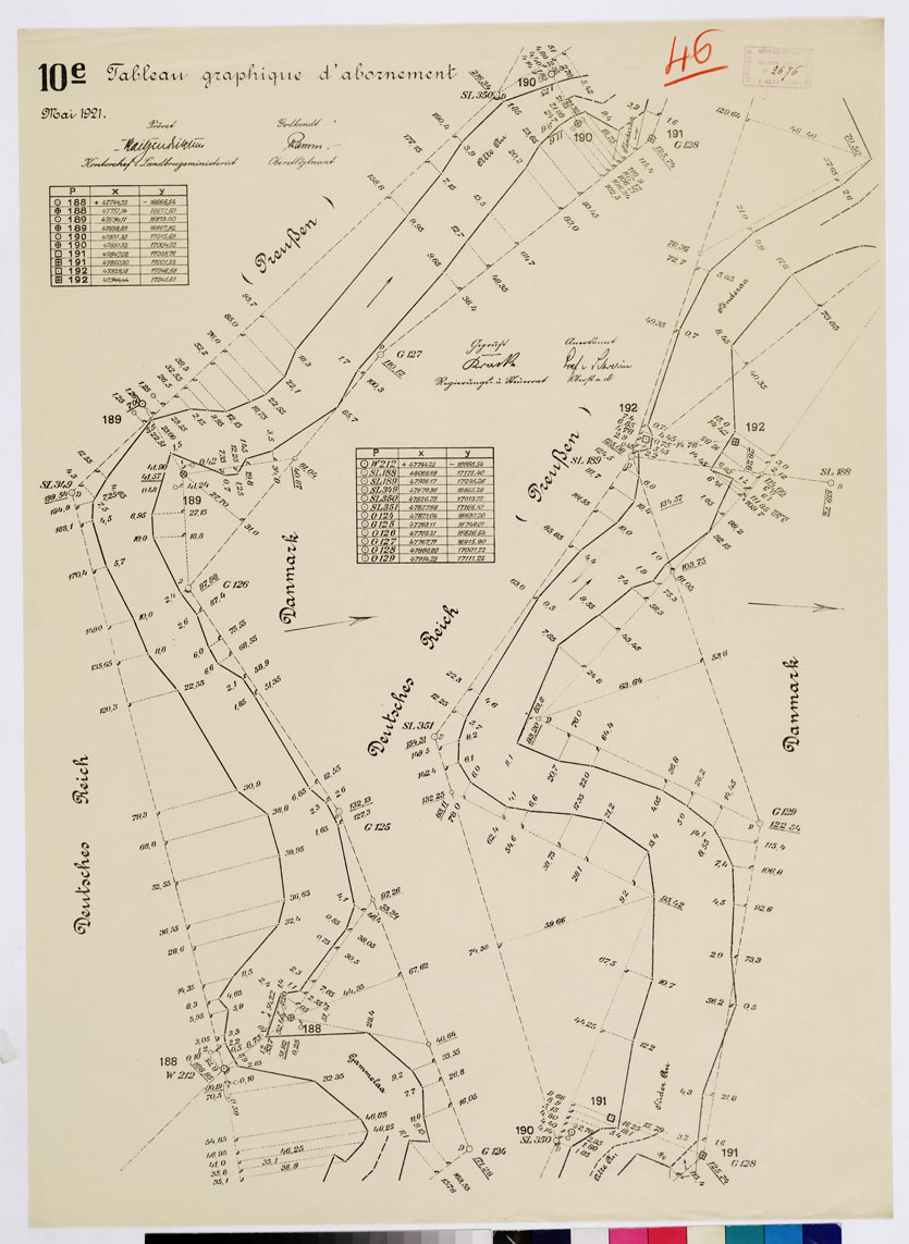 CARTE DE LA FRONTIERE ENTRE L'ALLEMAGNE (PRUSSE) ET LE DANEMARK - E TABLIE PAR LA COMMISSION DE DELIMITATION - TABLEAU GRAPHIQUE D'ABORNEMENT - Foglio 46