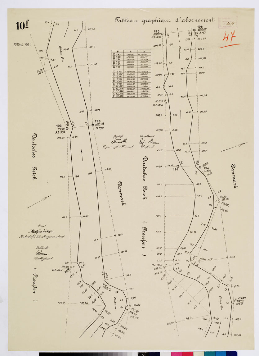 CARTE DE LA FRONTIERE ENTRE L'ALLEMAGNE (PRUSSE) ET LE DANEMARK - E TABLIE PAR LA COMMISSION DE DELIMITATION - TABLEAU GRAPHIQUE D'ABORNEMENT - Foglio 47