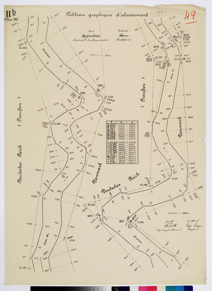 CARTE DE LA FRONTIERE ENTRE L'ALLEMAGNE (PRUSSE) ET LE DANEMARK - E TABLIE PAR LA COMMISSION DE DELIMITATION - TABLEAU GRAPHIQUE D'ABORNEMENT - Foglio 49