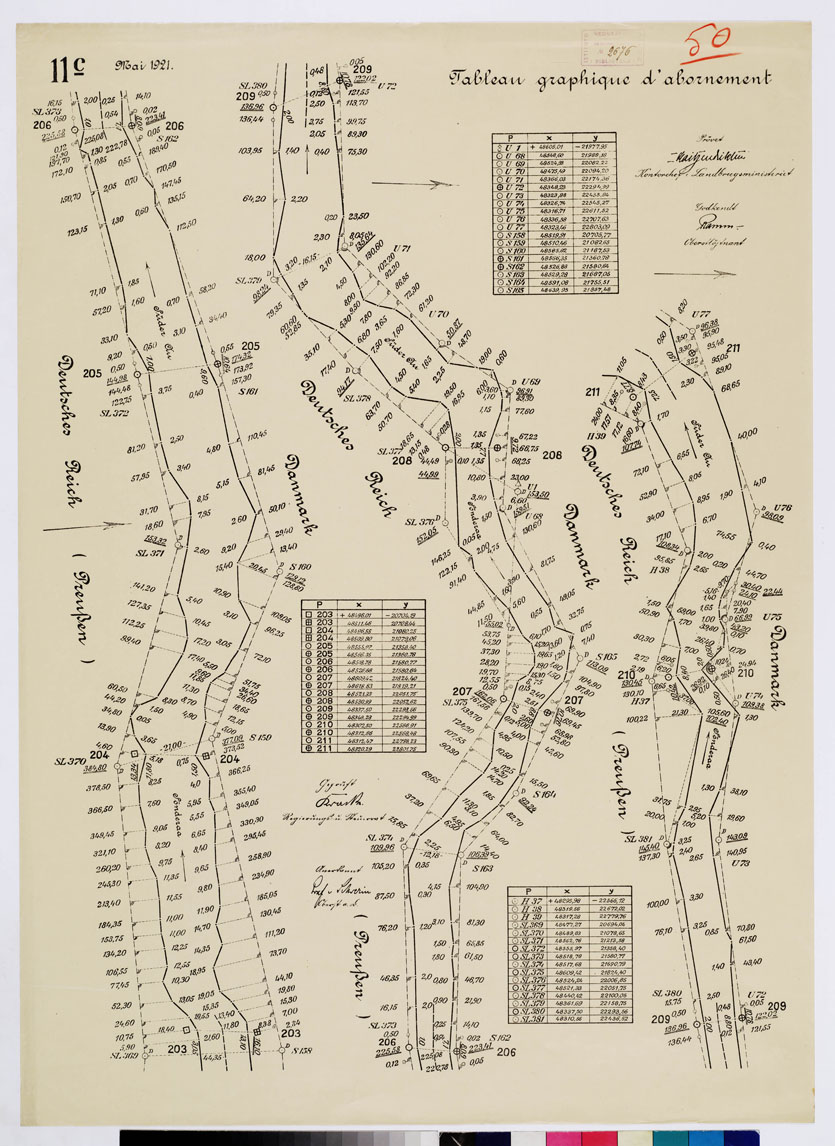 CARTE DE LA FRONTIERE ENTRE L'ALLEMAGNE (PRUSSE) ET LE DANEMARK - E TABLIE PAR LA COMMISSION DE DELIMITATION - TABLEAU GRAPHIQUE D'ABORNEMENT - Foglio 50