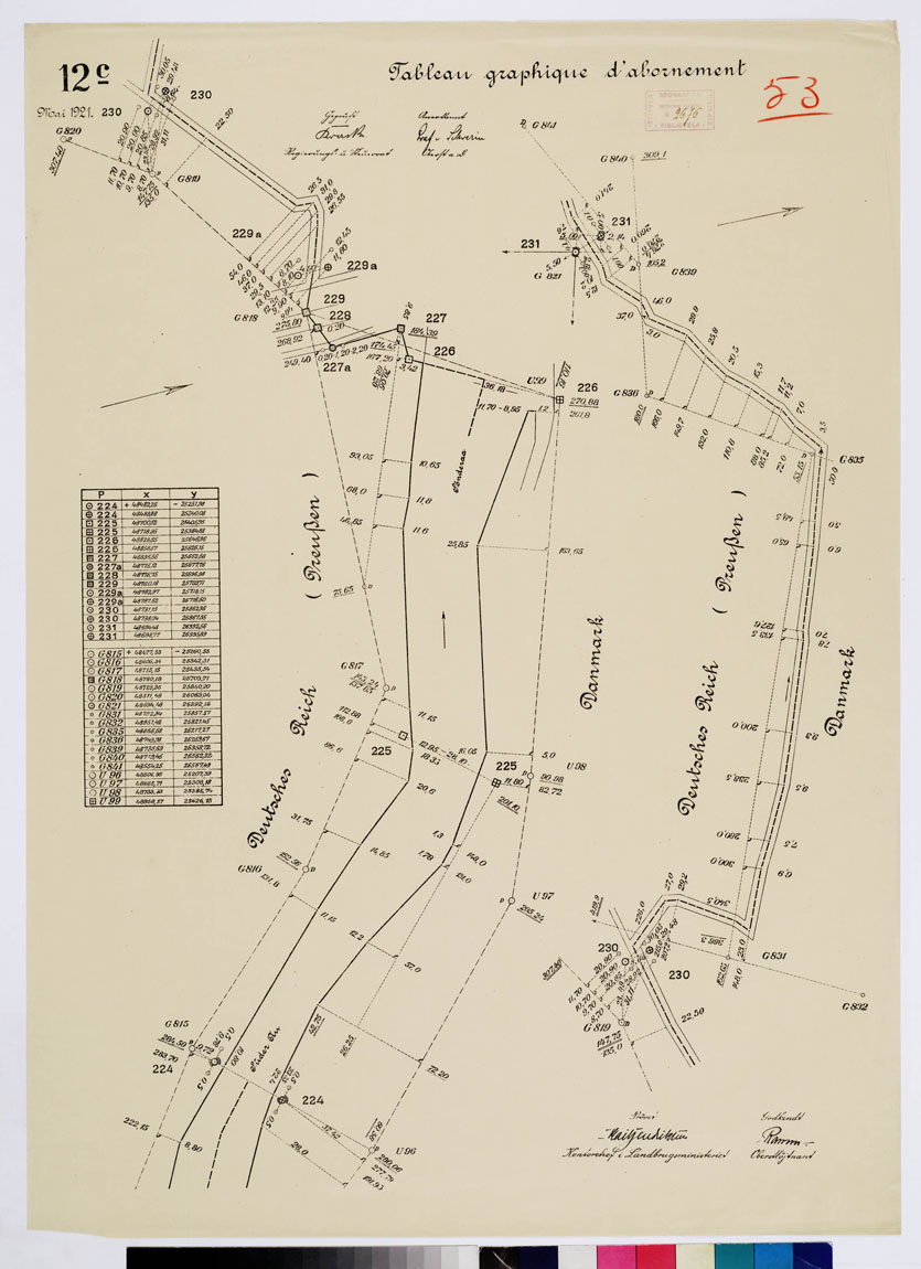 CARTE DE LA FRONTIERE ENTRE L'ALLEMAGNE (PRUSSE) ET LE DANEMARK - E TABLIE PAR LA COMMISSION DE DELIMITATION - TABLEAU GRAPHIQUE D'ABORNEMENT - Foglio 53