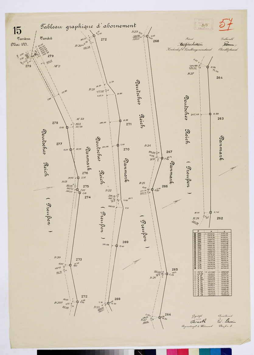 CARTE DE LA FRONTIERE ENTRE L'ALLEMAGNE (PRUSSE) ET LE DANEMARK - E TABLIE PAR LA COMMISSION DE DELIMITATION - TABLEAU GRAPHIQUE D'ABORNEMENT - Foglio 57
