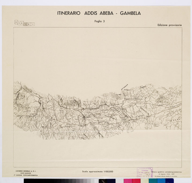 "Governo Generale A.O.I. - Settima sezione Topocartografica. Rilievo aereofotogrammetrico. Edizione provvisoria. Guardare anche l'inventario 5703 bis."