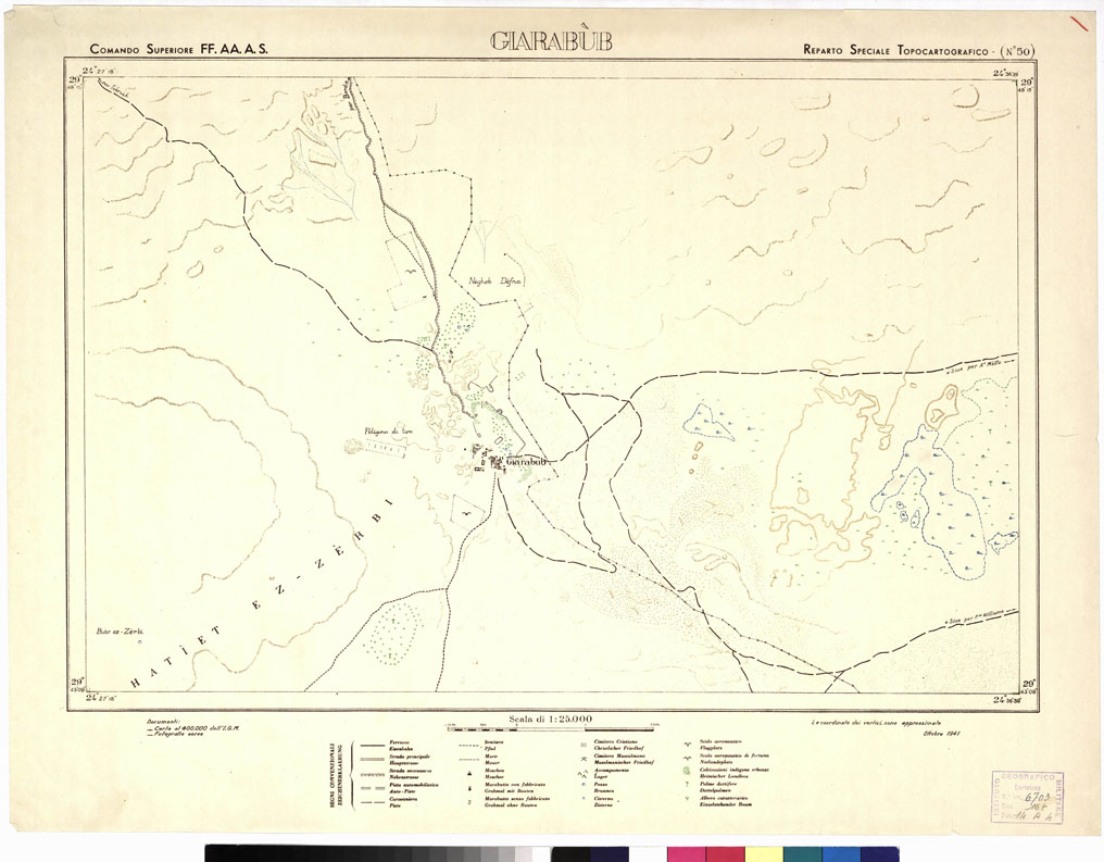 "Autore Comando Superiore FF.AA.A.S.- Reparto Speciale Topocartografico. Le coordinate dei vertici sono approssimate. Documenti : carta al 400.000 dell' I.G.M. Fotografie aeree."