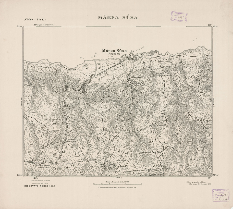 CARTA TOPOGRAFICA DELLA CIRENAICA AL 25.000 - CIRENE I S. E. - Marsa Susa