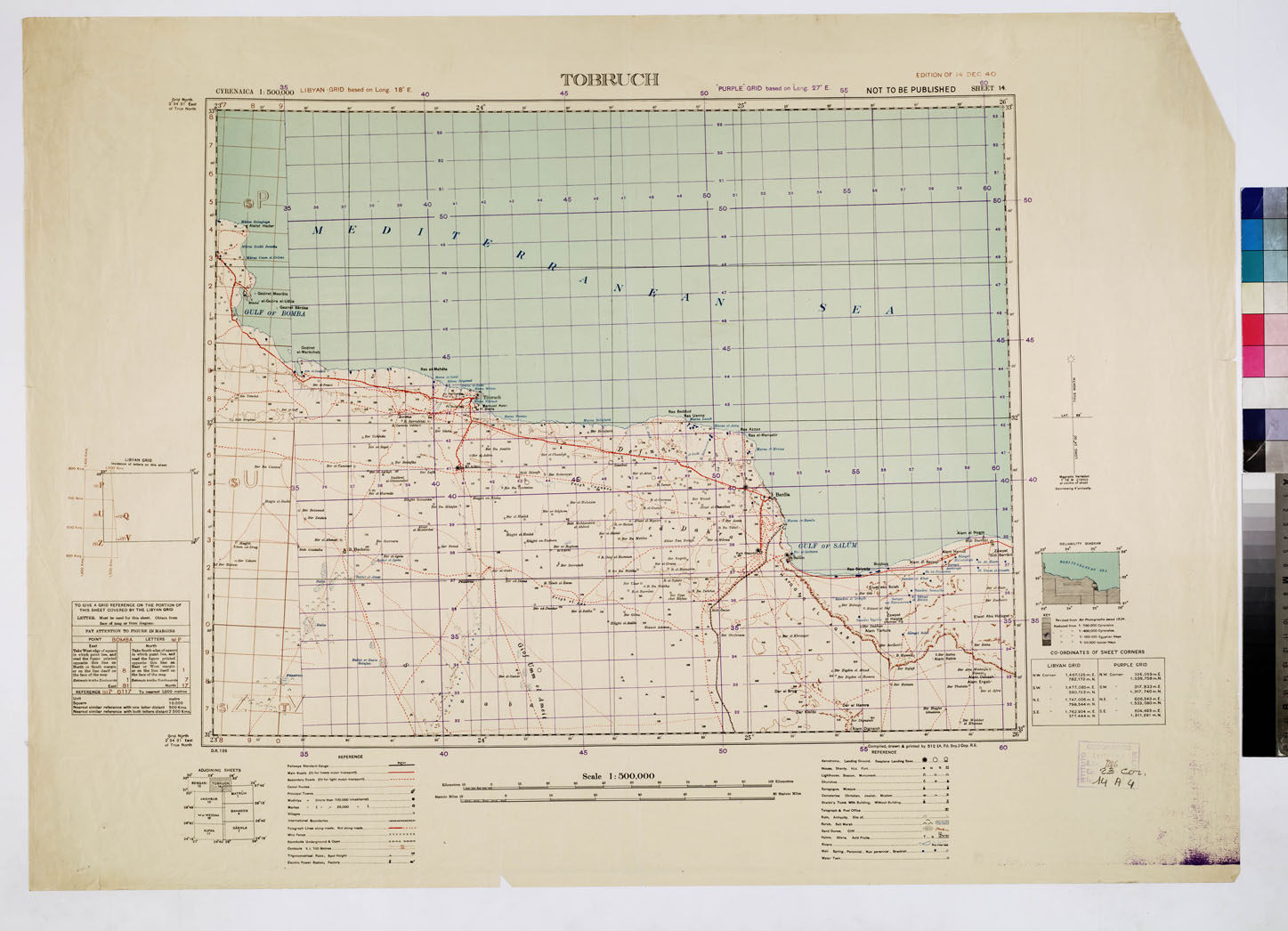 CIRENAICA (CARTA DERIVATA DAL 400.000 ITALIANO) - Tobruch