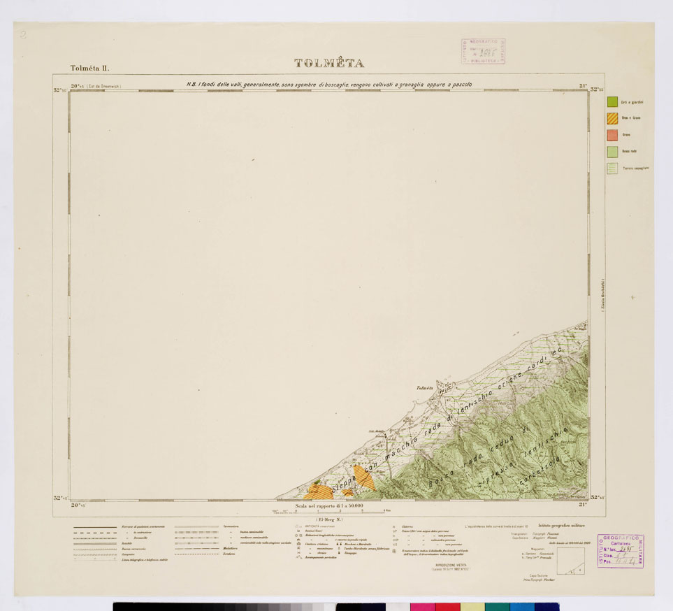CARTA TOPOGRAFICA DELLA CIRENAICA ALLA SCALA DI 1:50.000 - TOLMETA II - Tolmeta - Boschi e colture