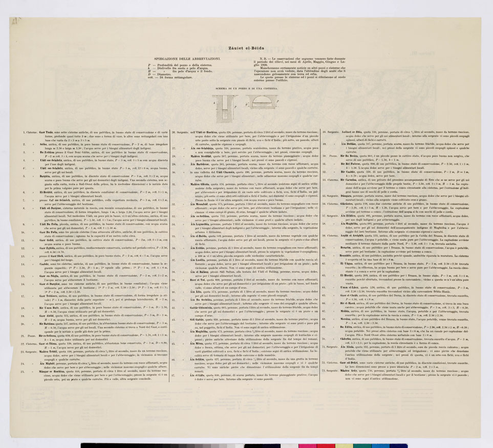 "Tre edizioni speciali in cromo: 1) Boschi e culture 2) pozzi e cisterne 3) varie specie di terreni. I.G.M. Le tre edizioni speciali sono fondate sui dati raccolti dai topografi dell' I.G.M. incaricati della Missione Topografica degli anni 1919-20 per le levate al 100.000 da impiegarsi per le carte al 50.000 (ved. N° 16 d'ordine, N. 2454 d'inventario). Ad essi ufficiali erano state date particolari istruzioni affinché fossero eseguite il maggior numero possibile di osservazioni circa lo studio del terreno, delle condizioni idrografiche e della vegetazione. Le carte costituiscono perciò un prezioso contributo alla conoscenza della Cirenaica. Mediante colori e segni esse indicano le particolari diversità della vegetazione spontanea (boschi radi o fitti, macchie, ecc.), terreni incolti e colture, le particolari condizioni delle acque (pozzi, sorgenti, cisterne, laghi invernali, caverne naturali) e diversità dei terreni superficiali, venendo a essere quindi dimostrazioni di valore scientifico e pratico. Le notizie che dai tre tipi di carte si ricavano permettono di desumere interessanti conclusioni relative al paese e alle sue condizioni idrografiche e agricole e allo studio del suolo."