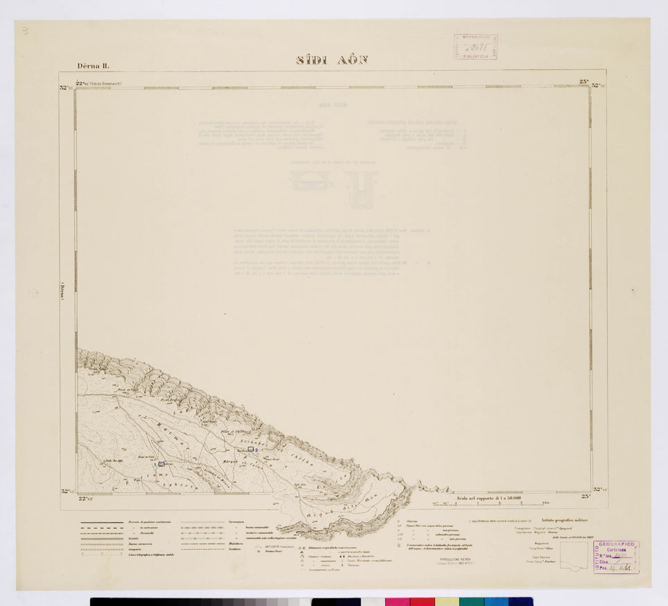 CARTA TOPOGRAFICA DELLA CIRENAICA ALLA SCALA DI 1:50.000 - DERNA II - Sidi Aon