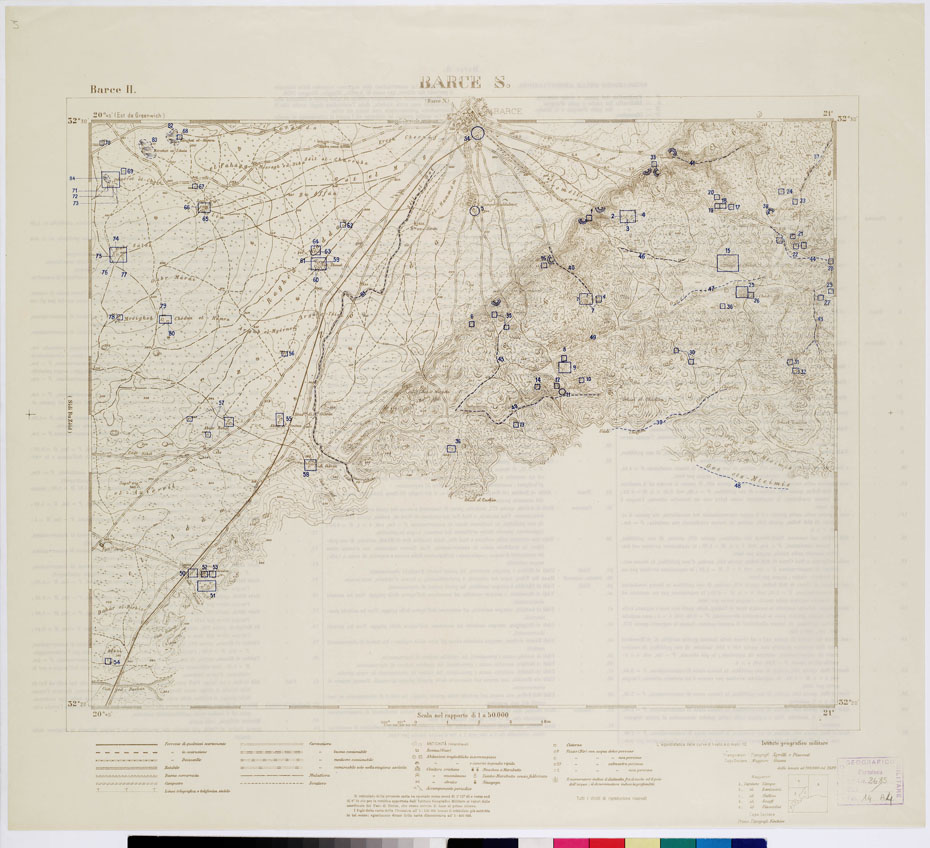 CARTA TOPOGRAFICA DELLA CIRENAICA ALLA SCALA DI 1:50.000 - BARCE II - Barce S. - Pozzi e cisterne