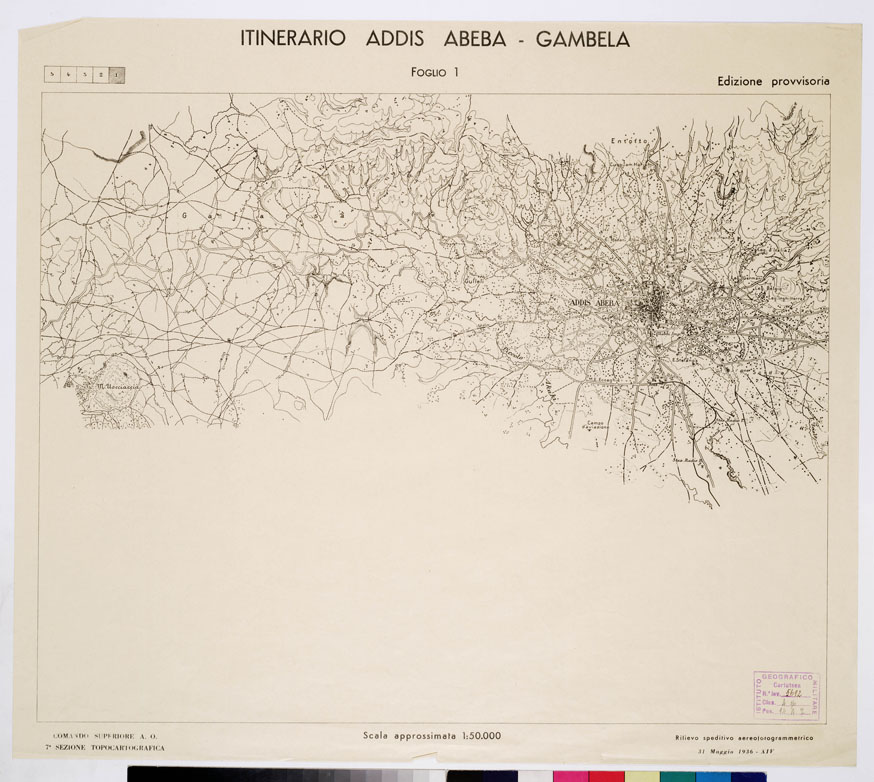 "Rappresentazione orografica dimostrativa rilievo speditivo aereofotogrammetrico. Comando Superiore A.O. 7^ Sezione Topocartografica."