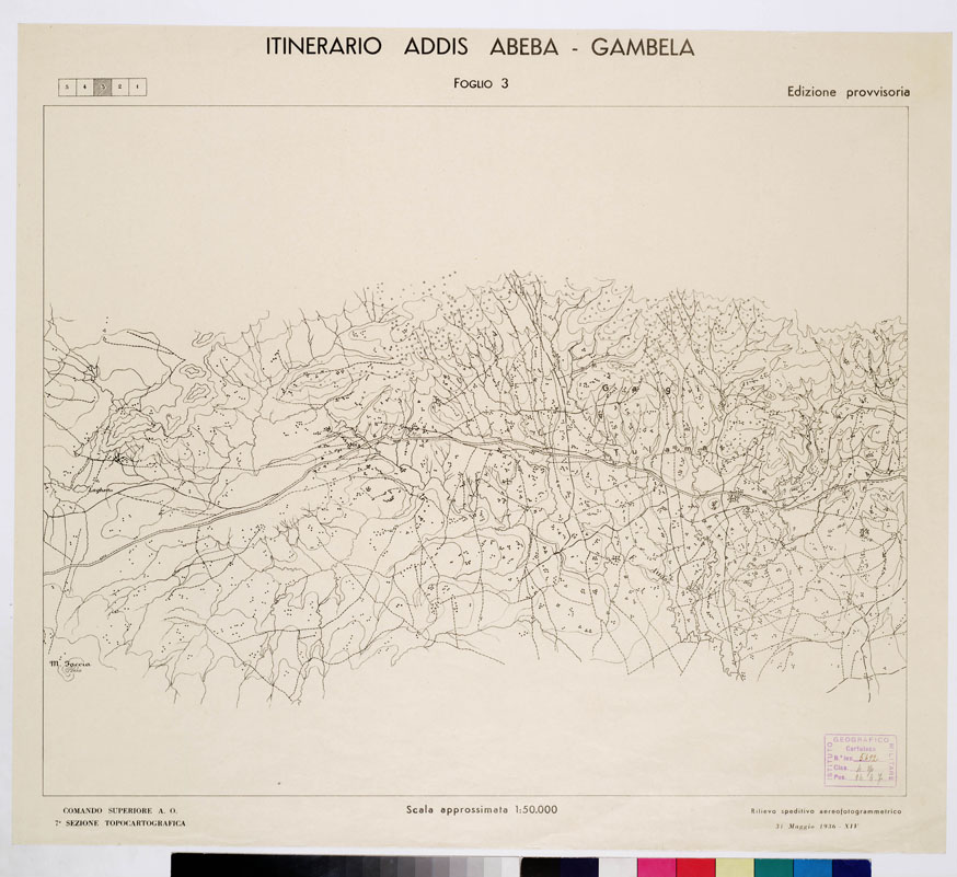 "Rappresentazione orografica dimostrativa rilievo speditivo aereofotogrammetrico. Comando Superiore A.O. 7^ Sezione Topocartografica."