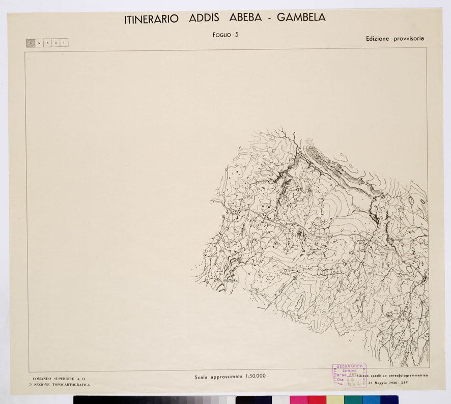"Rappresentazione orografica dimostrativa rilievo speditivo aereofotogrammetrico. Comando Superiore A.O. 7^ Sezione Topocartografica."
