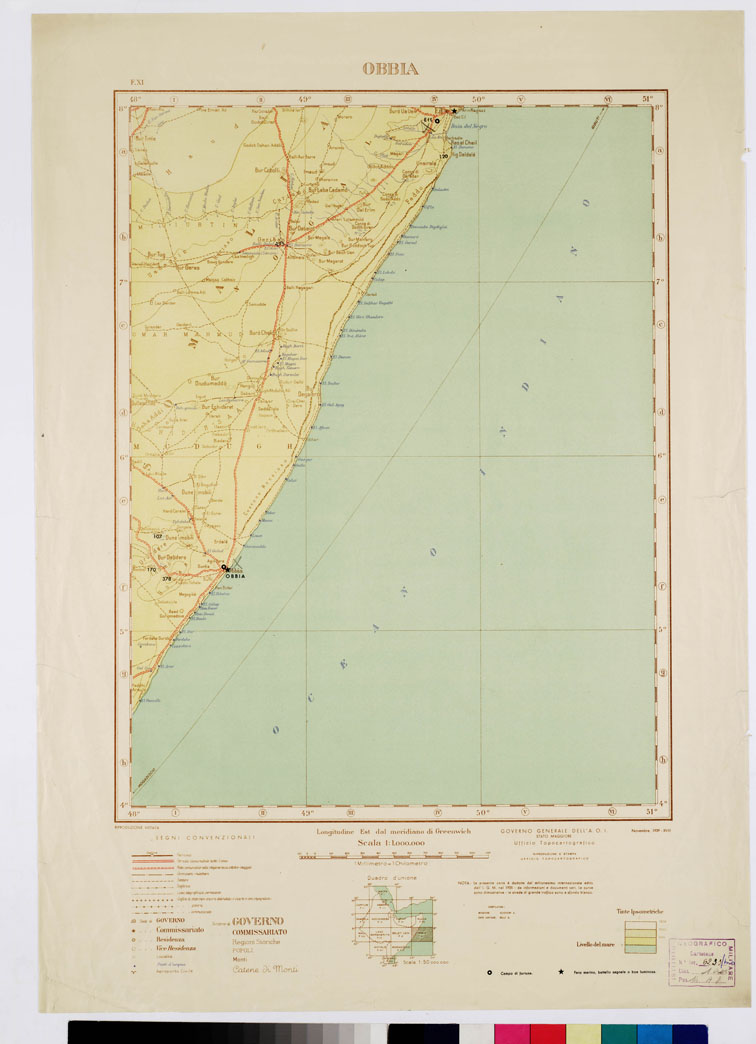 CARTA DELL'AFRICA ORIENTALE ITALIANA-TIPO AVIAZIONE ANNO 1938 - Foglio 11 - Obbia
