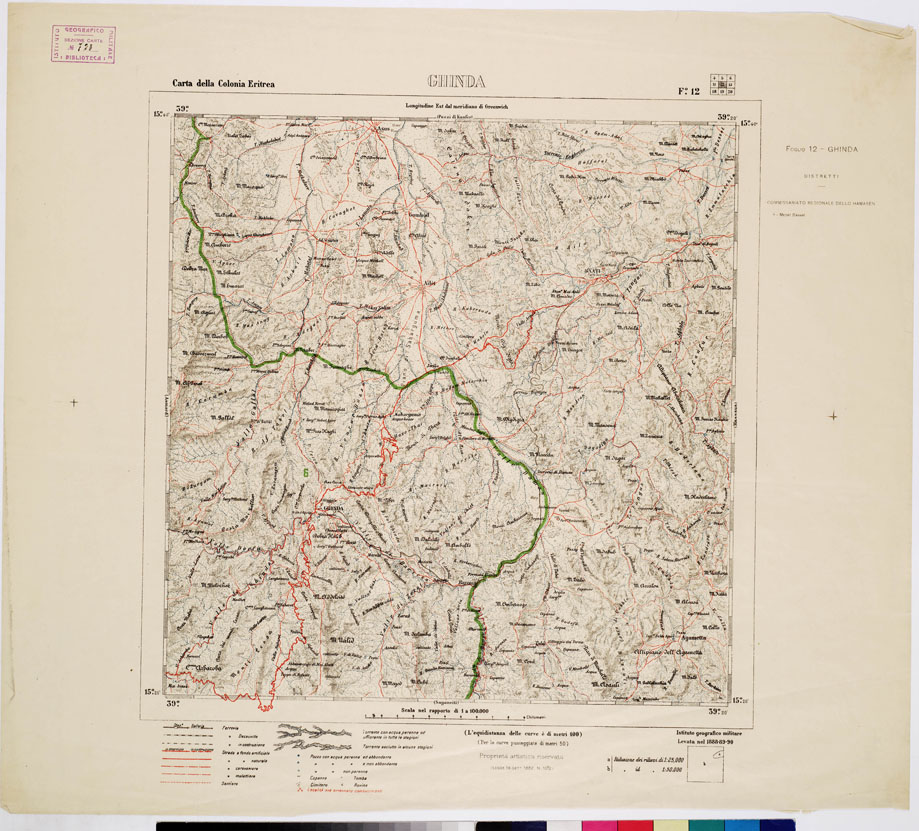 CARTA DELLA COLONIA ERITREA CON L'INDICAZIONE E COLORI DELLE CIRCOSCRIZIONI - Foglio 12 - GHINDA