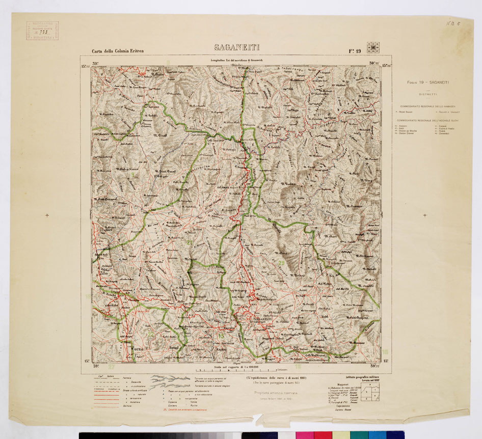 CARTA DELLA COLONIA ERITREA CON L'INDICAZIONE E COLORI DELLE CIRCOSCRIZIONI - Foglio 19- SAGANEITI