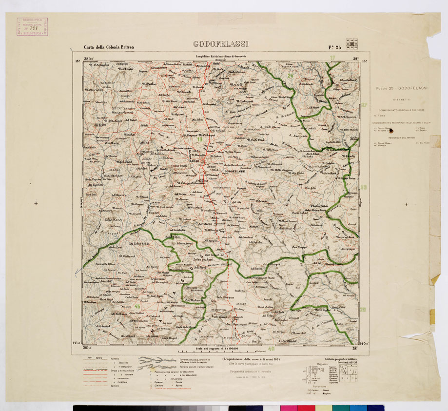 CARTA DELLA COLONIA ERITREA CON L'INDICAZIONE E COLORI DELLE CIRCOSCRIZIONI - Foglio 25 - GODOFELASSI