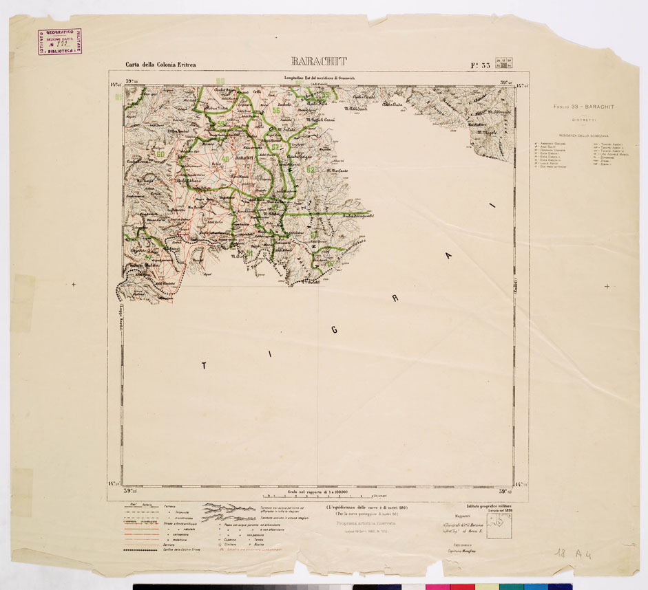 CARTA DELLA COLONIA ERITREA CON L'INDICAZIONE E COLORI DELLE CIRCOSCRIZIONI - Foglio 33 - BARACHIT