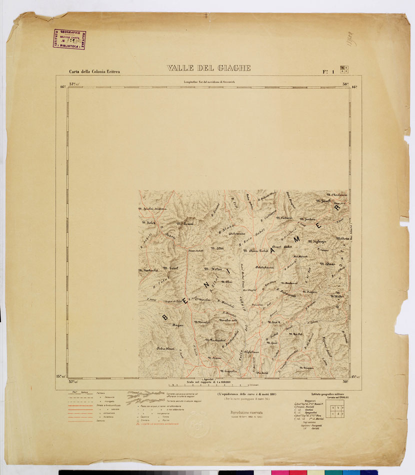 CARTA DELLA COLONIA ERITREA. I.G.M. - Foglio 1 - VALLE DEL GIAGHE