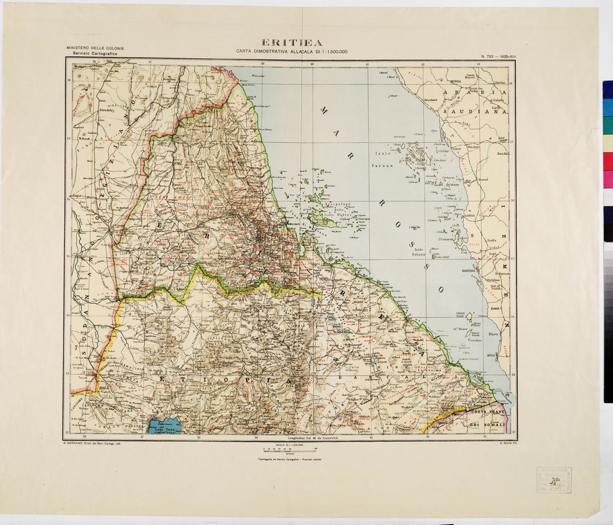 ERITREA CARTA DIMOSTRATIVA MINISTERO DELLE COLONIE,