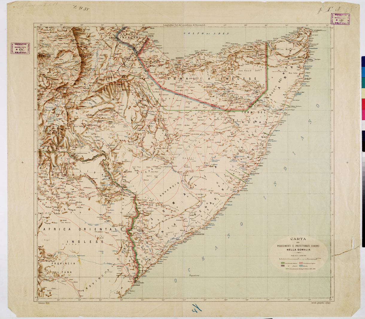CARTA DEI POSSEDIMENTI E PROTETTORATI EUROPEI NELLA SOMALIA.