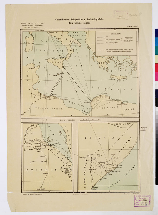 COMUNICAZIONI TELEGRAFICHE E RADIOTELEGRAFICHE DELLE COLONIE ITALIANE.MINISTERO DELLE COLONIE. UFFICIO STUDI E PROPAGANDA. SERVIZIO CARTOGRAFICO.