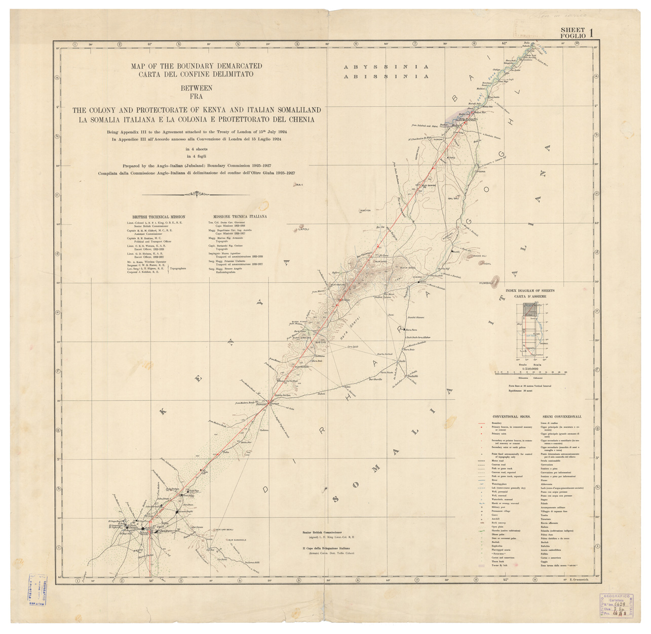CARTA DEL CONFINE DELIMITATO FRA LA SOMALIA ITALIANA E LA COLONIA E PROTETTORATO DEL CHENIA - Foglio 1