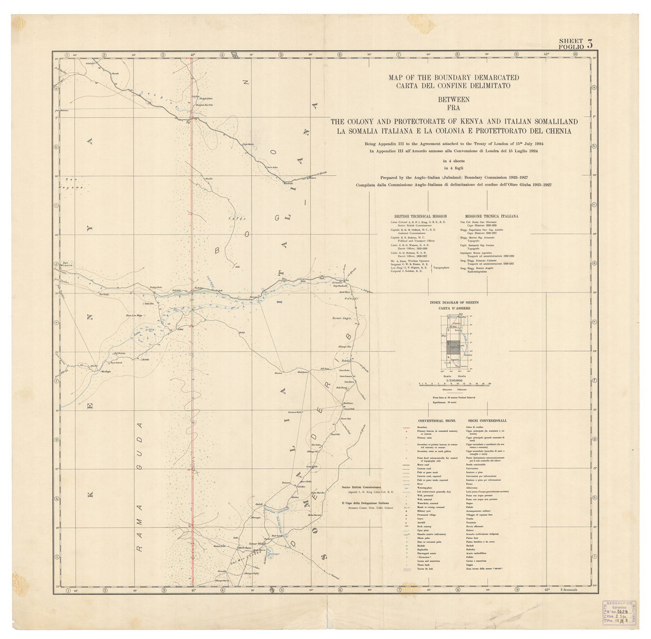 CARTA DEL CONFINE DELIMITATO FRA LA SOMALIA ITALIANA E LA COLONIA E PROTETTORATO DEL CHENIA - Foglio 3