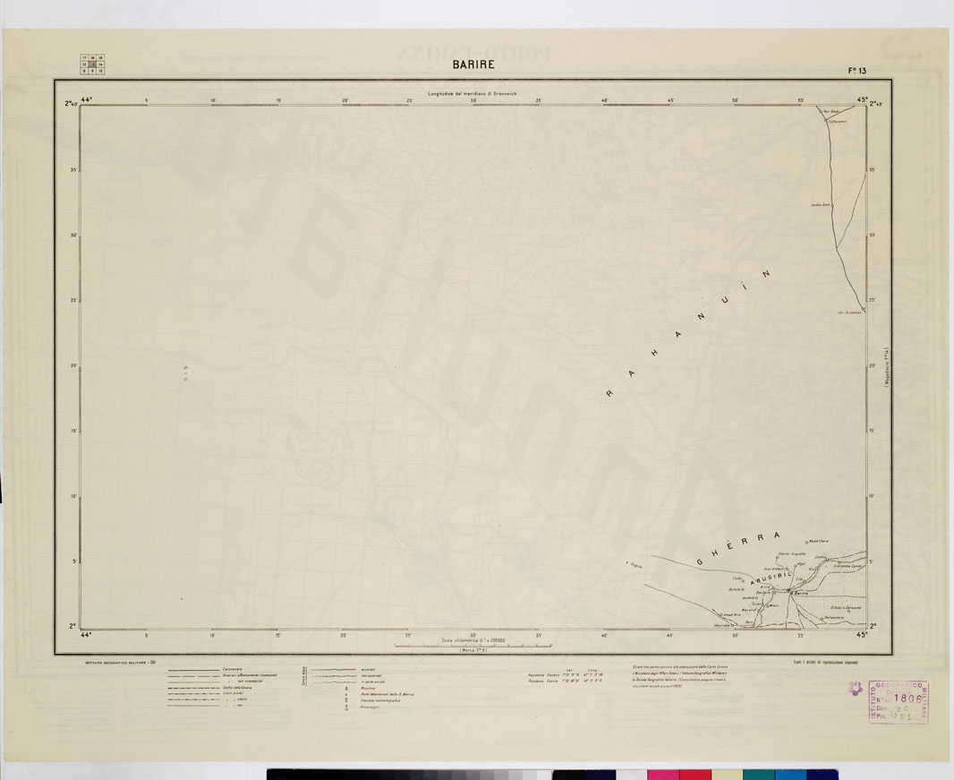 CARTA DIMOSTRATIVA DELLA SOMALIA ITALIANA. I.G.M. - Foglio 13 BARIRE