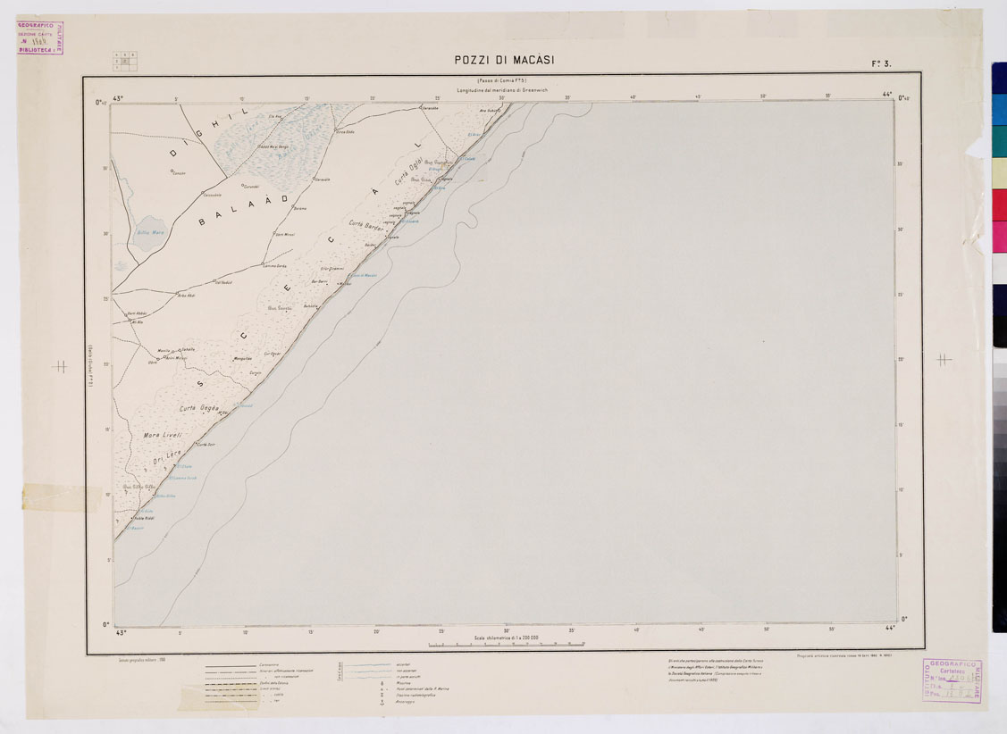 CARTA DIMOSTRATIVA DELLA SOMALIA ITALIANA. I.G.M. - Foglio 3 POZZI DI MACASI - a colori