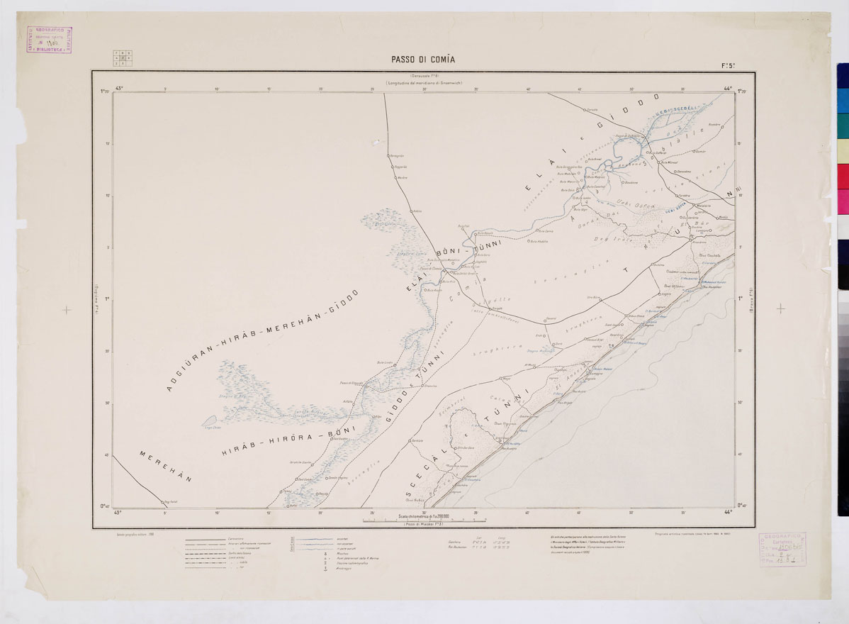 CARTA DIMOSTRATIVA DELLA SOMALIA ITALIANA. I.G.M. - Foglio 5 PASSO DI COMIA - a colori