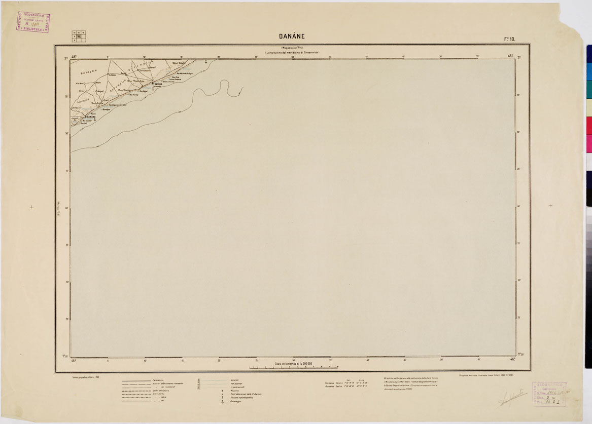 CARTA DIMOSTRATIVA DELLA SOMALIA ITALIANA. I.G.M. - Foglio 10 DANANE - a colori