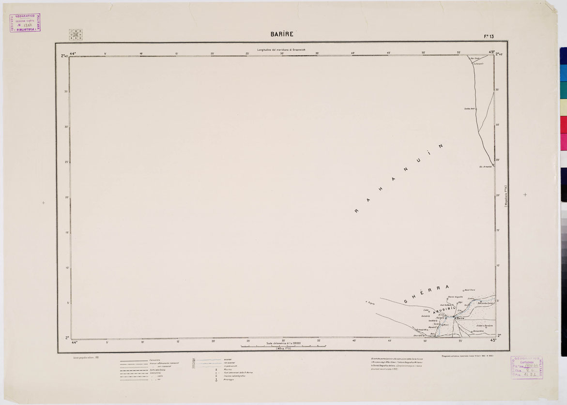 CARTA DIMOSTRATIVA DELLA SOMALIA ITALIANA. I.G.M. - Foglio 13 BARIRE - a colori