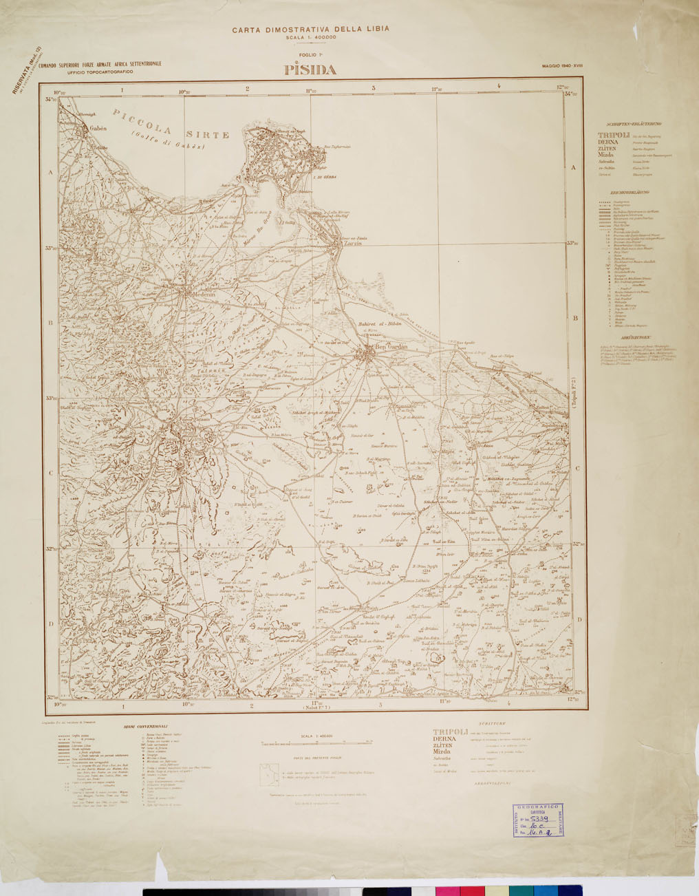 CARTA DIMOSTRATIVA DELLA LIBIA - Foglio 1 PISIDA MAGGIO 1940 XVIII