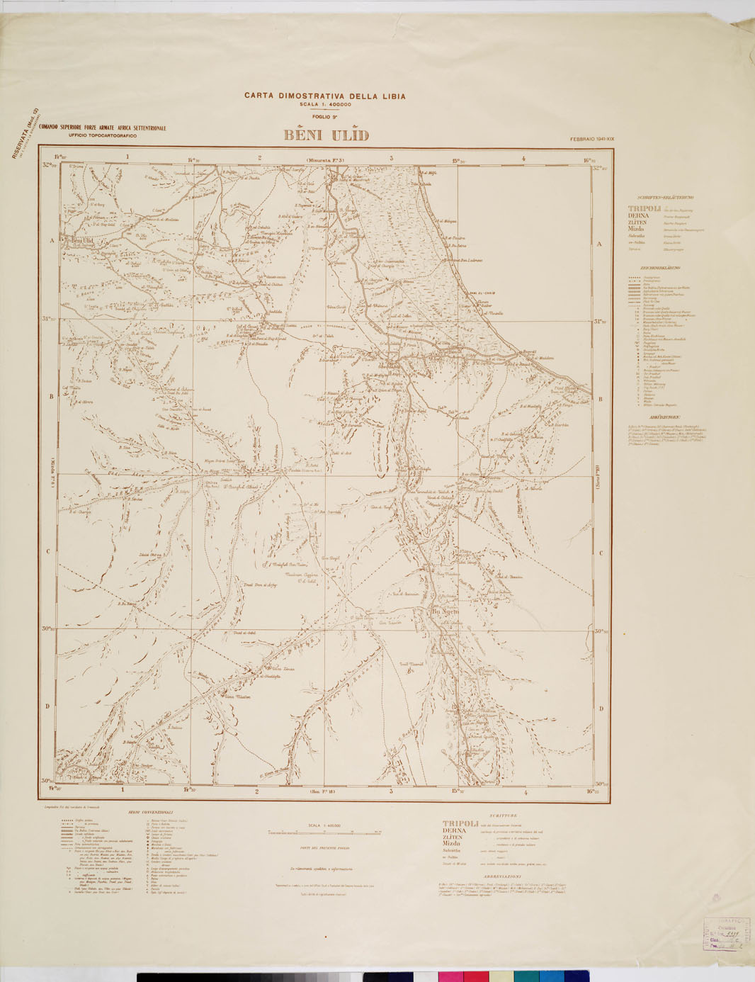CARTA DIMOSTRATIVA DELLA LIBIA - Foglio 9 BENI ULID FEBBRAIO 1941 XIX