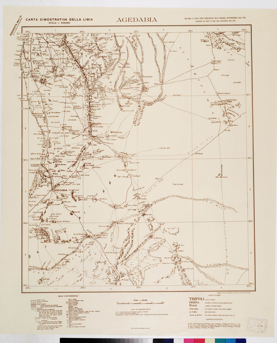 CARTA DIMOSTRATIVA DELLA LIBIA - Foglio 12 AGEDABIA EDIZIONE 1931