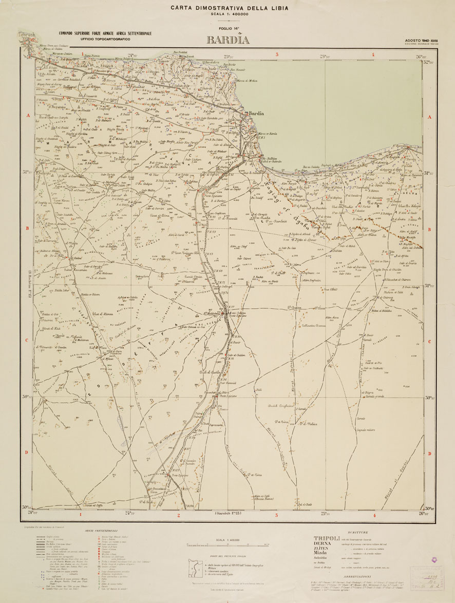CARTA DIMOSTRATIVA DELLA LIBIA - Foglio 14 BARDIA AGOSTO 1940 XVIII