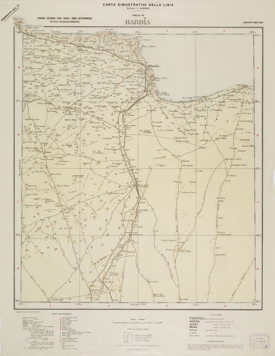 CARTA DIMOSTRATIVA DELLA LIBIA - Foglio 14 BARDIA AGOSTO 1940 XVIII
