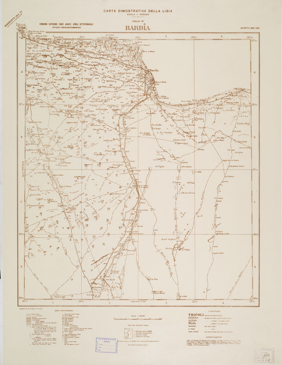 CARTA DIMOSTRATIVA DELLA LIBIA - Foglio 14 BARDIA AGOSTO 1940 XVIII
